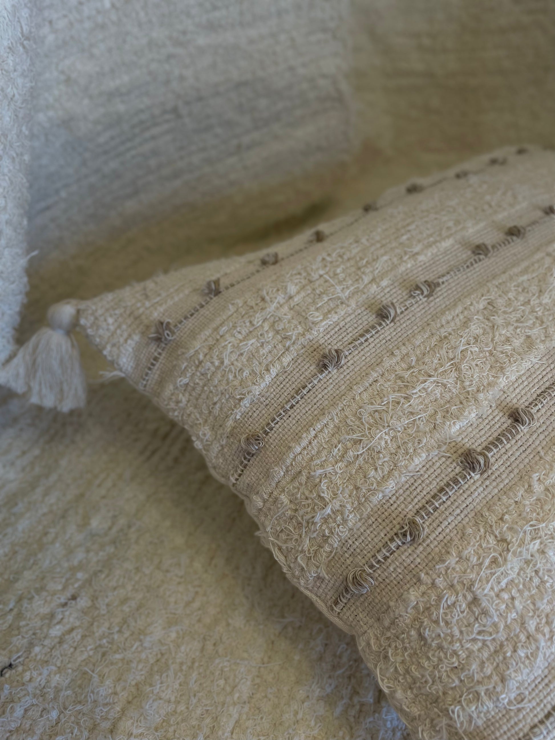 Os pompons e os tassels nas extremidades acrescentam um charme extra, trazendo movimento e autenticidade para a peça. Versáteis, essas almofadas ficam lindas sozinhas ou combinadas entre si, criando composições únicas que refletem seu estilo pessoal.