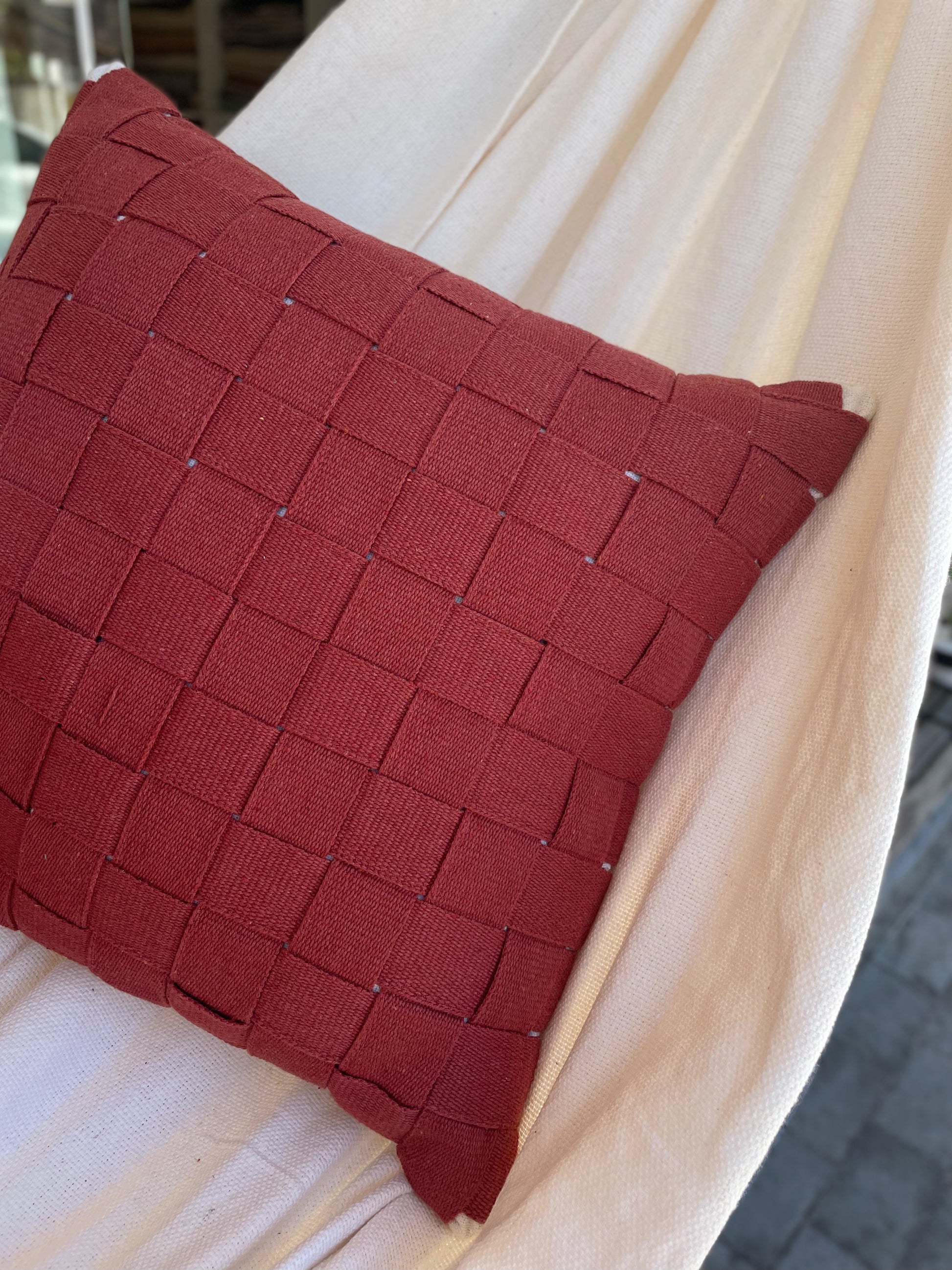 Aposte na elegância atemporal e no design sofisticado da capa de almofada Náutica para transformar qualquer ambiente com personalidade e requinte. Com um trabalho de entrelaçamento que forma um belo padrão quadriculado, essa peça é o exemplo perfeito de como simplicidade e textura podem caminhar juntas para criar algo marcante.