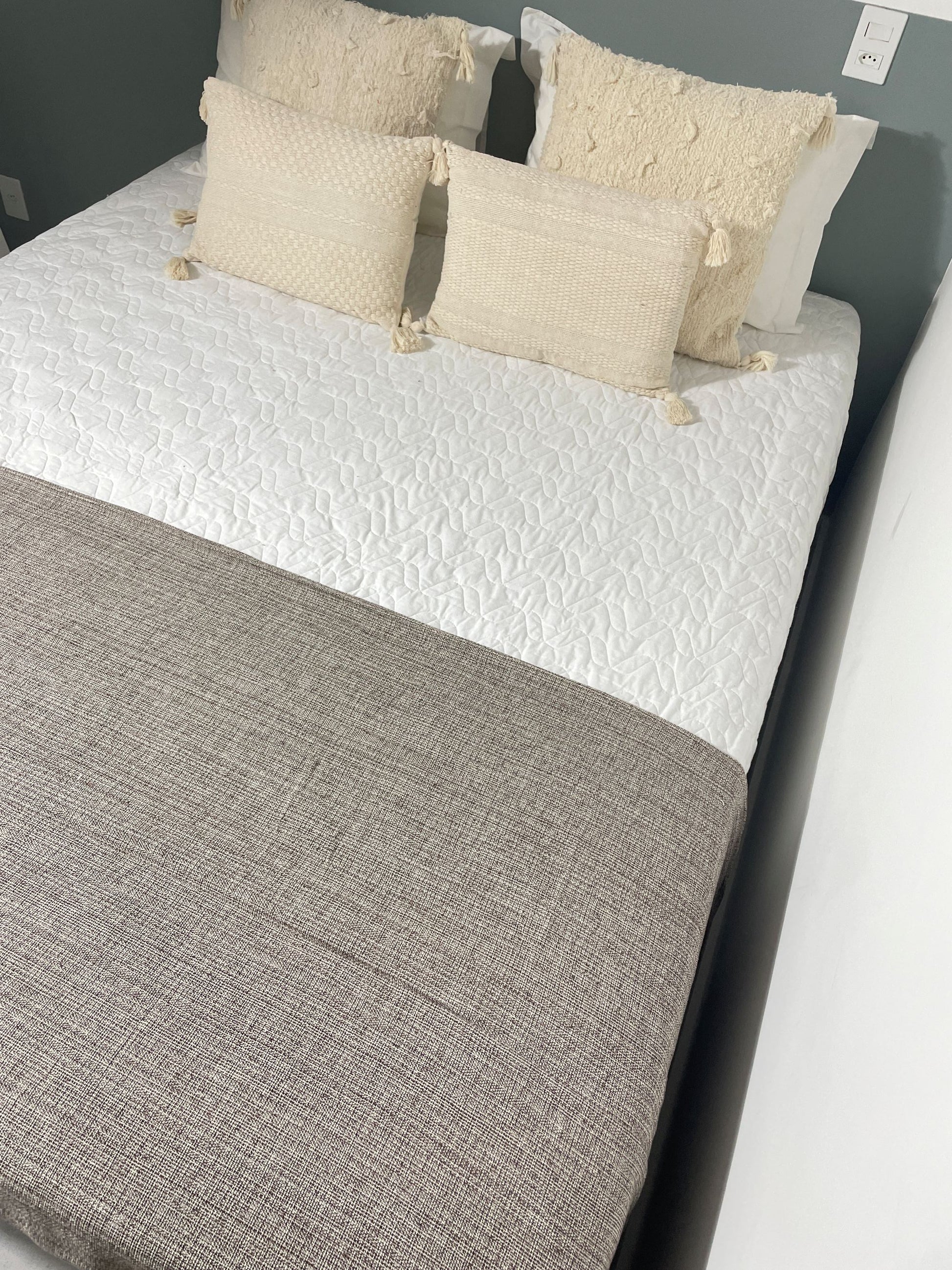 A colcha protege e adiciona um toque de sofisticação e charme, tornando o ambiente mais acolhedor e elegante.