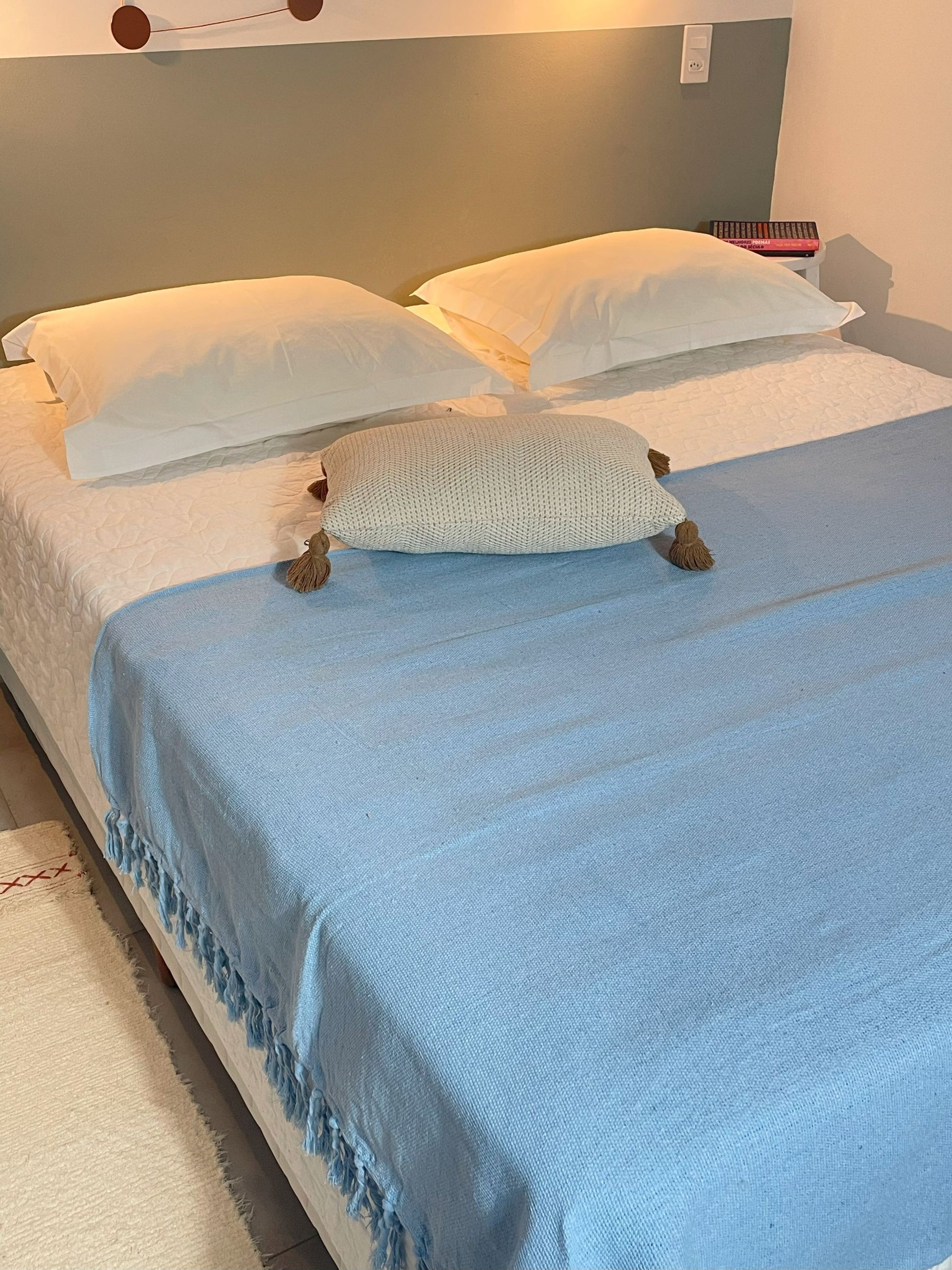 A Colcha queen é macia e aconchegante, podendo ser usada como peseira ou mesmo como coberta na hora de dormir.