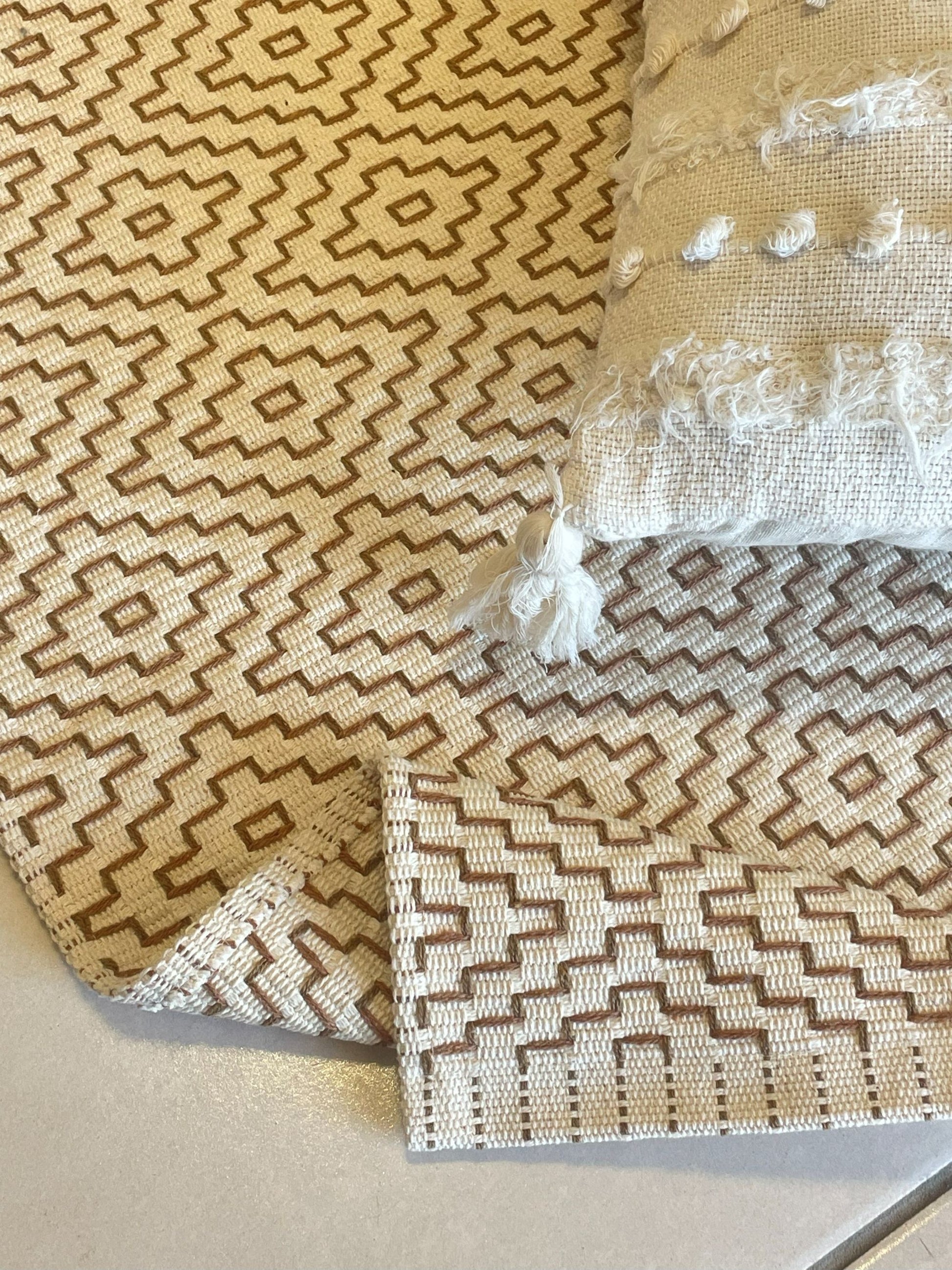 Os charmosos tapetes Bordados são feitos com base de algodão liso e trabalhados com bordados em linhas contrastantes, um projeto têxtil que une simplicidade e encanto. A textura e a padronagem que se apresentam a partir dos bordados, são detalhes que enriquecem qualquer ambiente e valorizam a sua decoração.